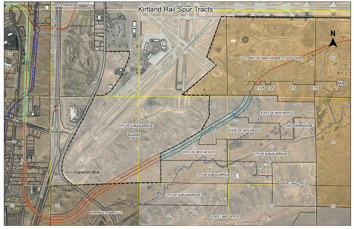 New Mexico Transloading, LLC, is the first client of the rail spur, and has already invested about $1.4 million to rehabilitate the northern portion of the rail line. The rail spur branches off from the main rail line from Broadway Blvd. to Rio Bravo Blvd. to serve future industrial sites with access to the Sunport.